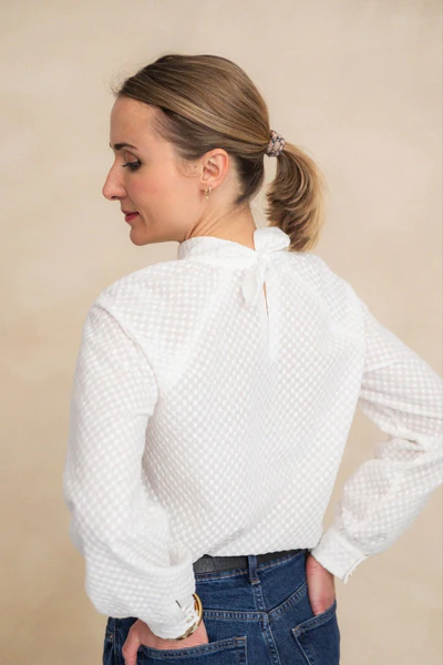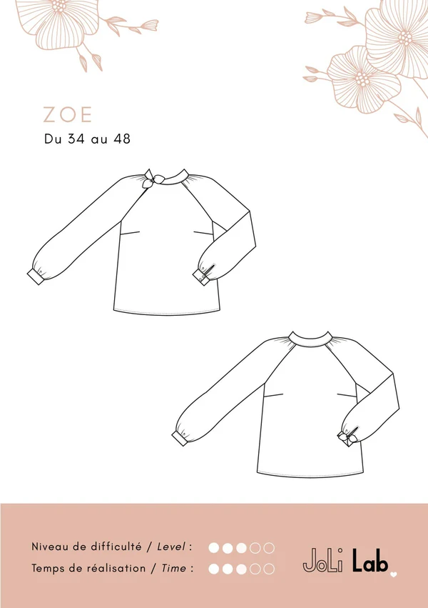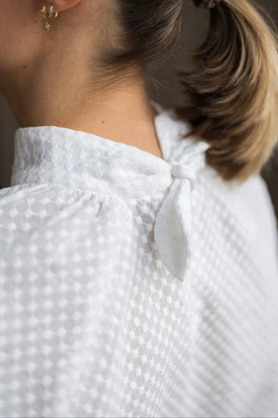 Zoé est un patron de blouse féminine et raffinée, à la coupe intemporelle et au détail signature : de jolis nœuds que l’on peut placer à différents endroits selon les envies.
