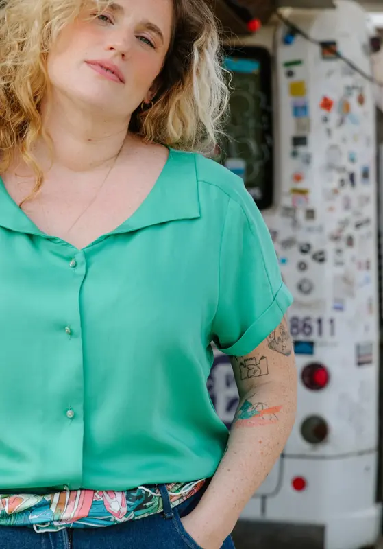 Le patron Almost propose un chemisier d’inspiration estivale, pensé pour une confection accessible et un rendu soigné.