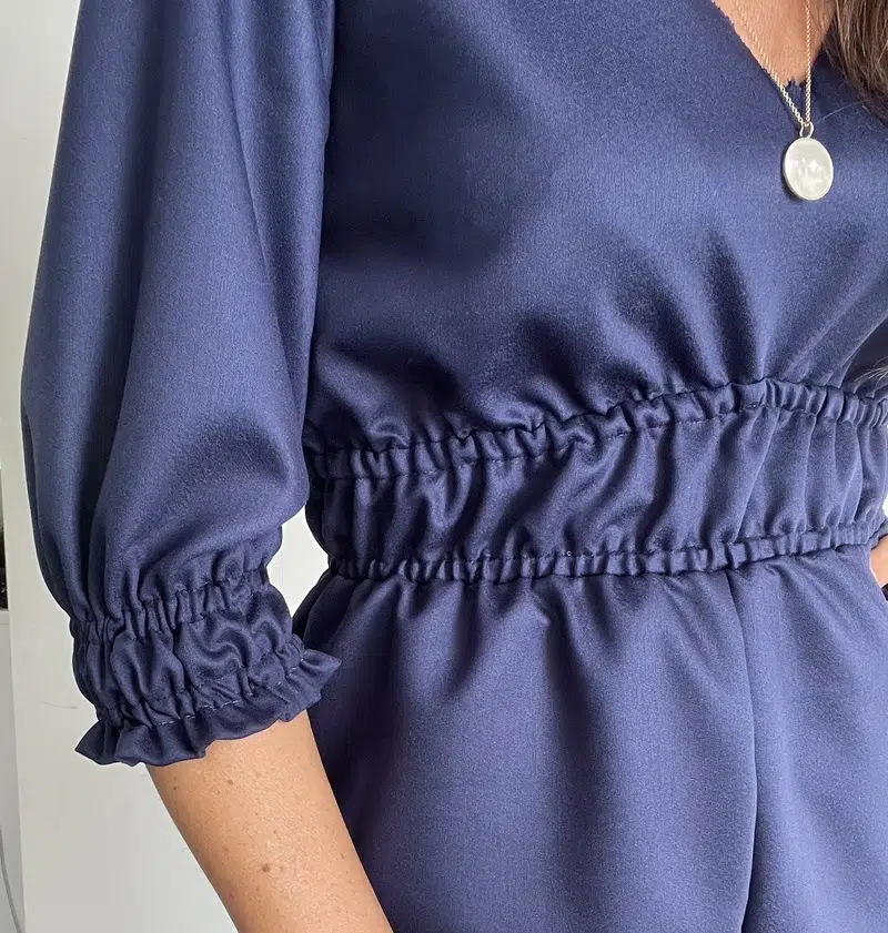 Sa taille froncée, obtenue par deux élastiques fins, s’ajuste naturellement à la morphologie sans marquer, tout en assurant un maintien confortable.