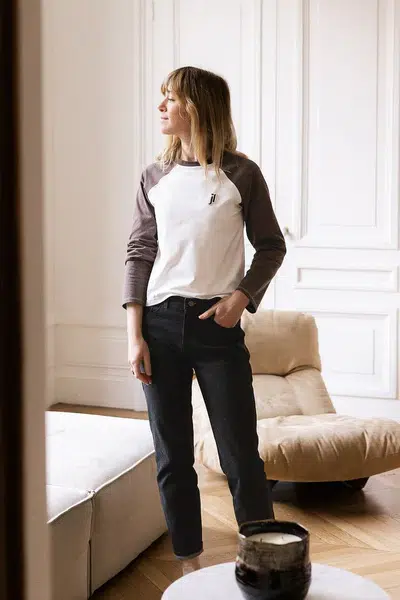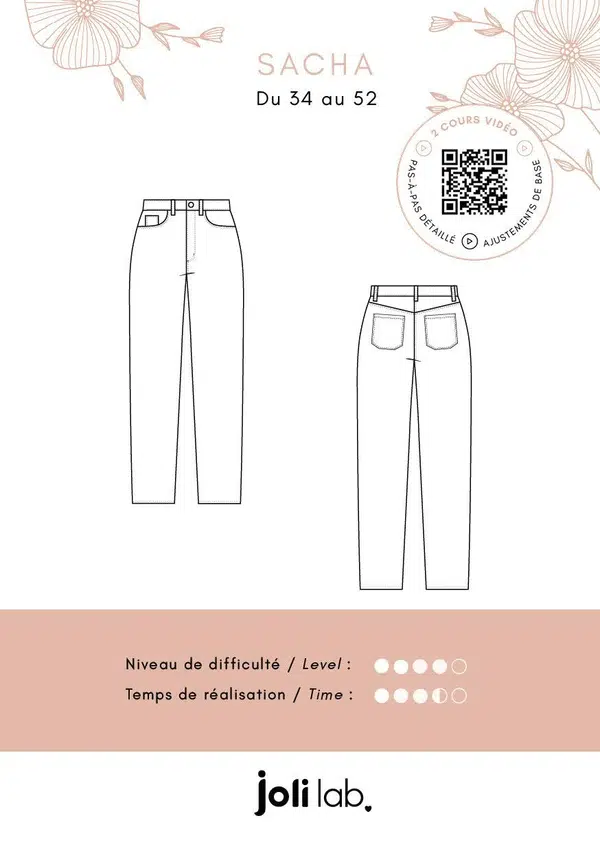 Le patron Sacha permet de réaliser un jean de style « mom » à la coupe structurée et confortable.