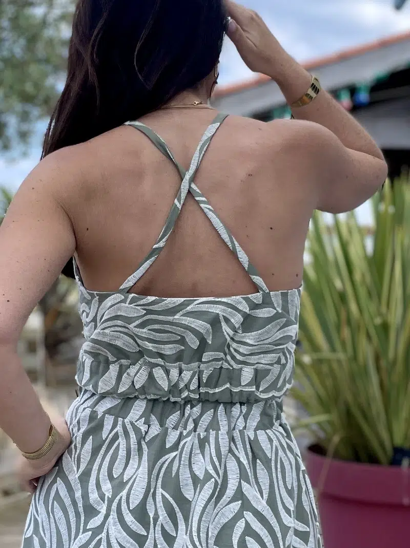 Le devant est légèrement froncé pour apporter du volume, sans alourdir la silhouette.