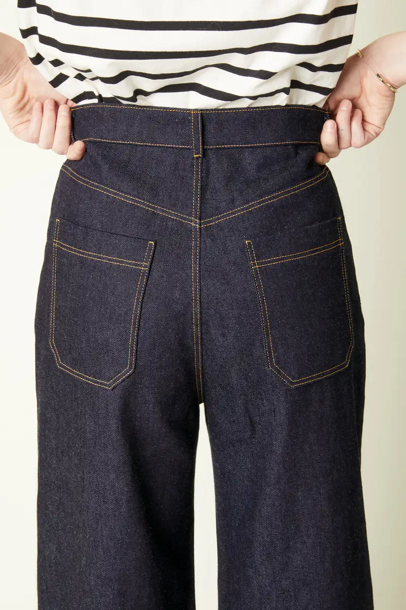 Tissus conseillés : privilégiez un denim brut ou rayé, ou une gabardine de coton épaisse pour une tenue optimale et une belle durabilité.