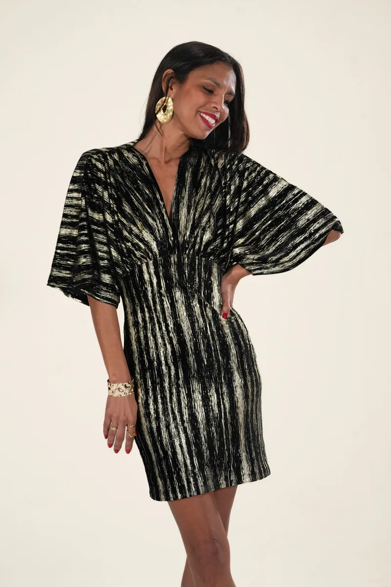 Anabelle, c’est la quintessence de la féminité. Une robe drapée aux manches kimono, dotée d’un décolleté profond froncé et d’un sublime dos blousant qui souligne les courbes avec élégance.