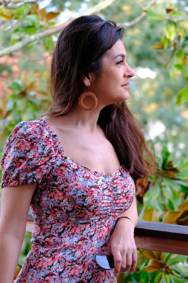 La robe Clarisse offre une coupe souple qui souligne la silhouette et s’évase subtilement vers le bas, pour un porté à la fois élégant et confortable.