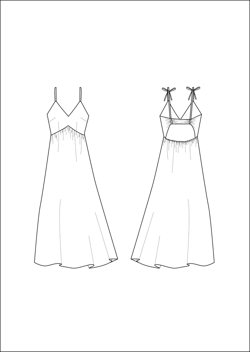 Le patron Léora vous propose une robe estivale à la fois féminine, confortable et élégante, pensée pour mettre en valeur la silhouette tout en étant compatible avec le port du soutien-gorge.