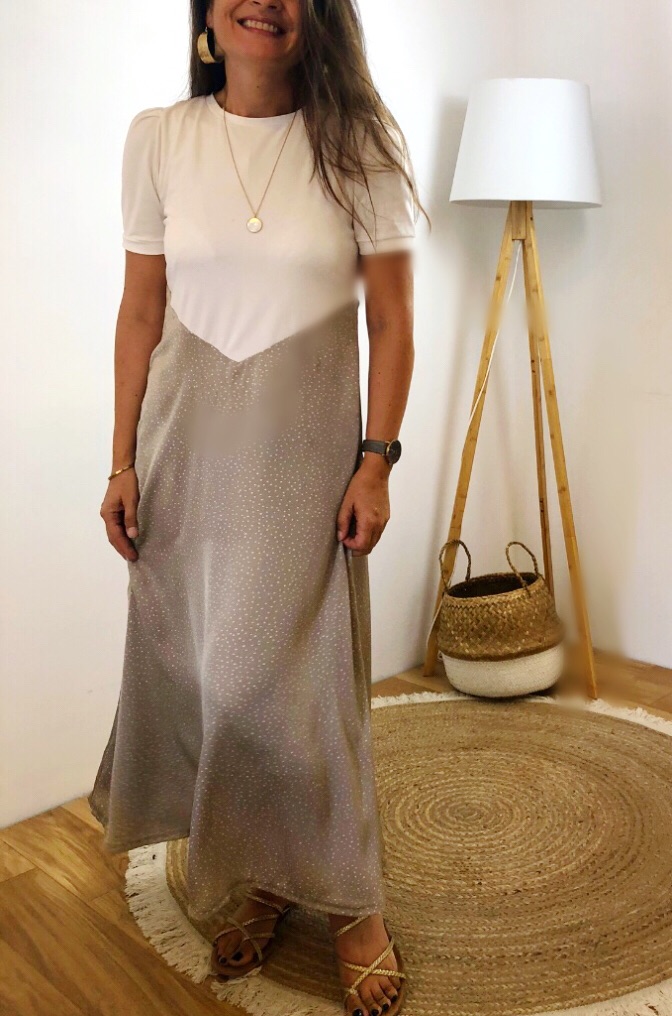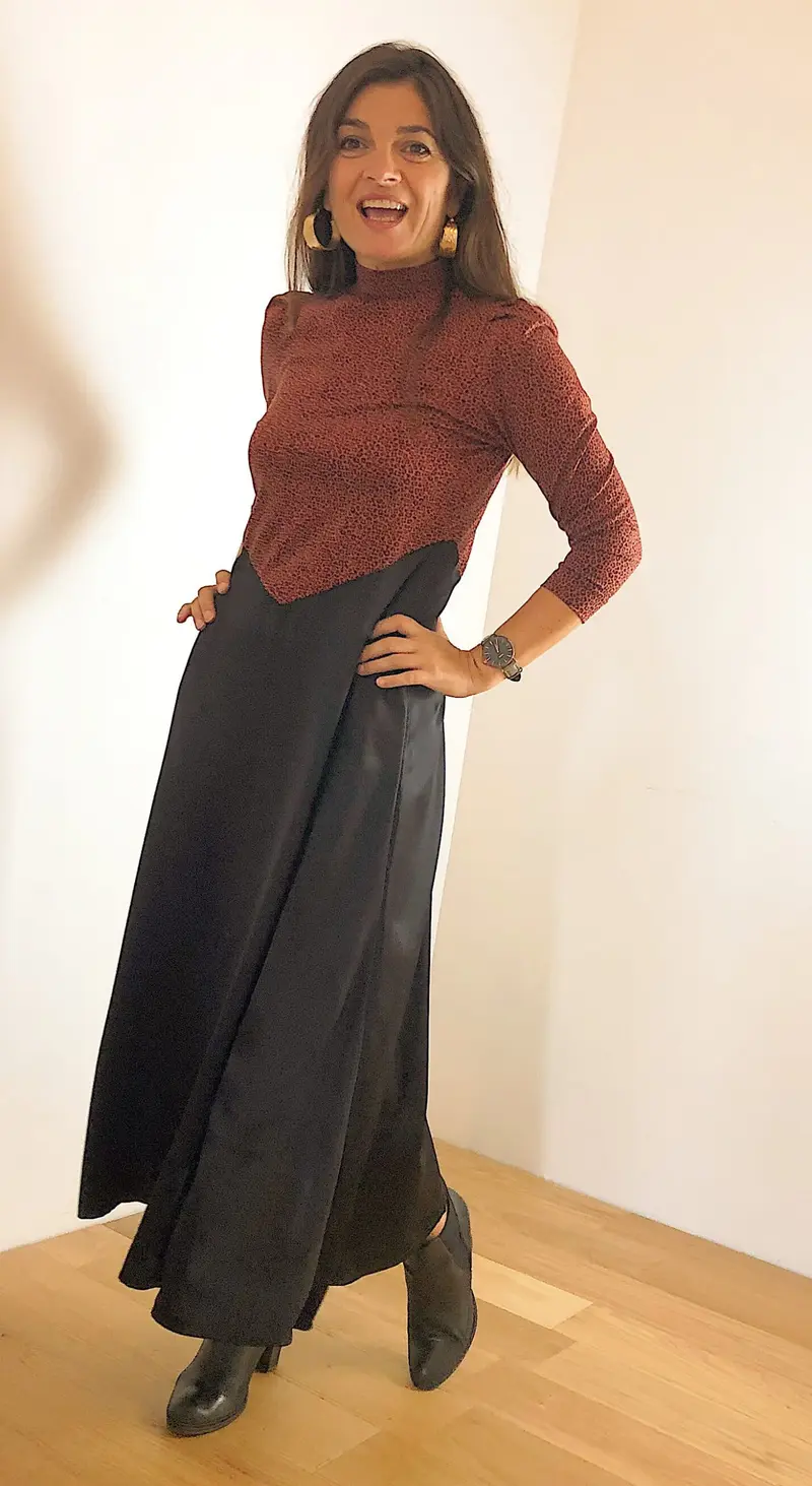 Avec sa jupe longue en tissu fluide et son haut en jersey stretch, Nina combine deux matières pour un style casual chic irrésistible.