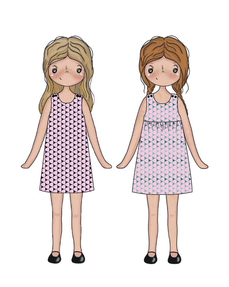 Robe chasuble boutonnée aux épaules pour fille, facile et rapide à coudre, idéale pour les débutants.