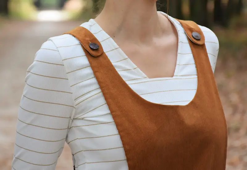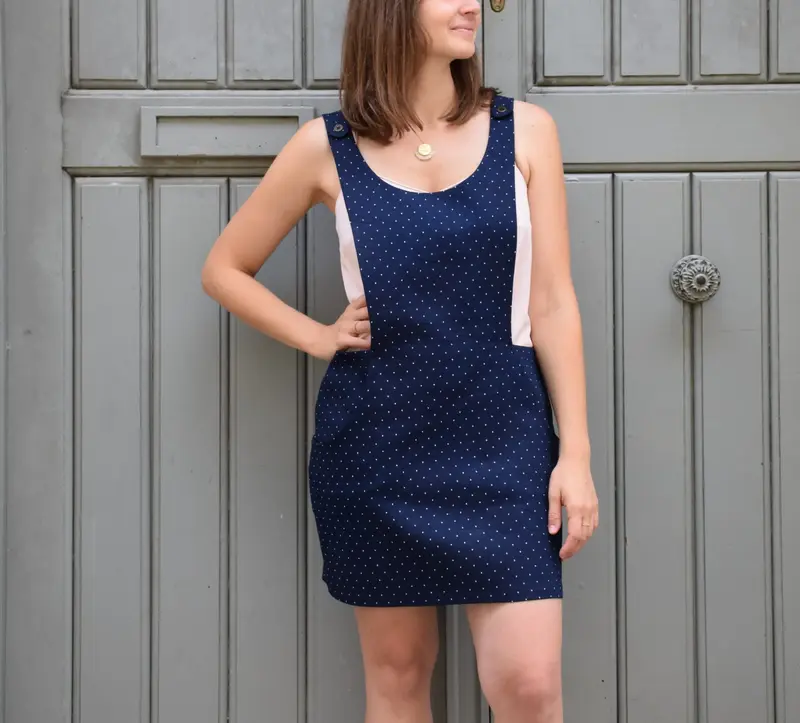 - Un tablier devant en une seule pièce, échancré à la taille pour souligner la silhouette