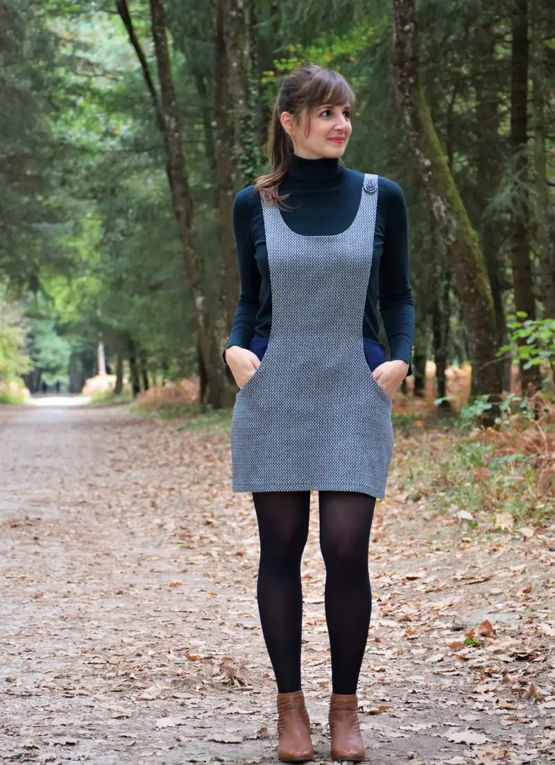 REYNA est une robe salopette au design graphique et affirmé, proposée du 34 au 46. Son architecture soignée et ses découpes structurées en font une pièce originale, à la fois féminine et contemporaine.