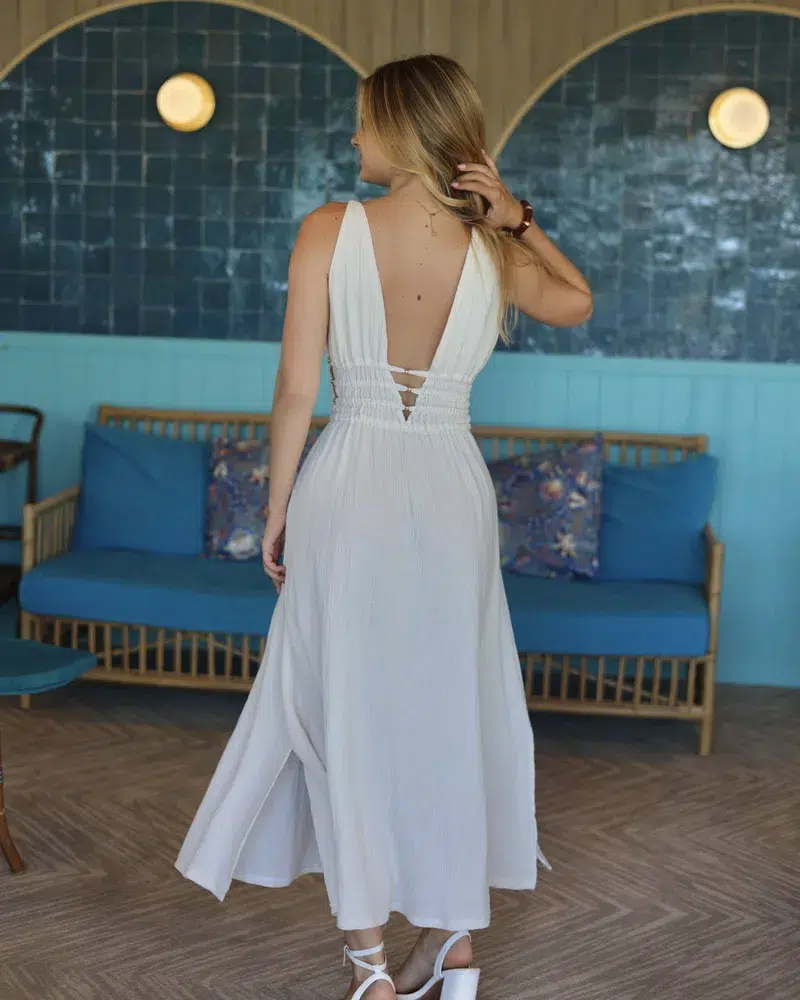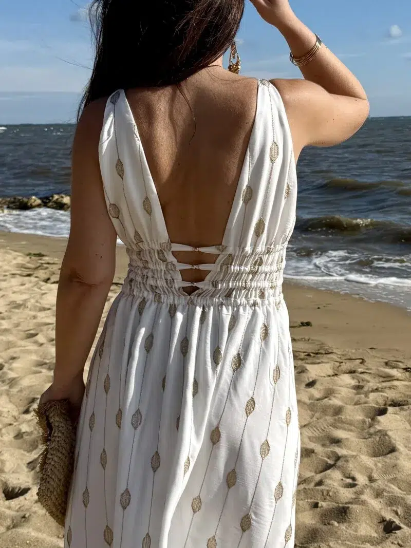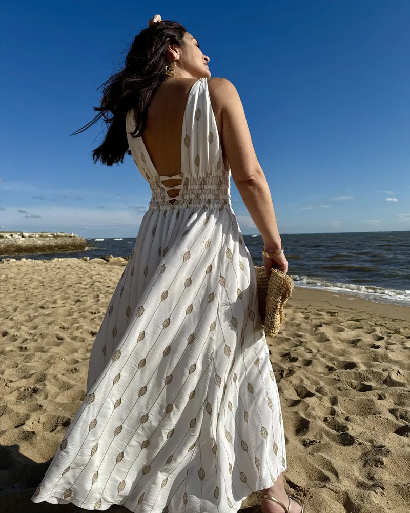 Selena, c’est la robe d’exception qui sublime l’été : une coupe fluide et féminine, des détails élégants, et un dos nu spectaculaire qui ne passera pas inaperçu.