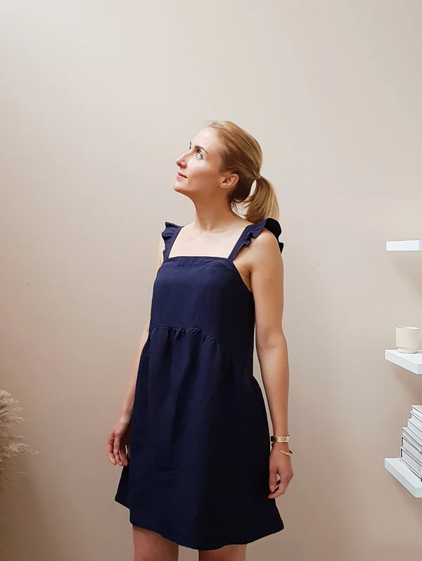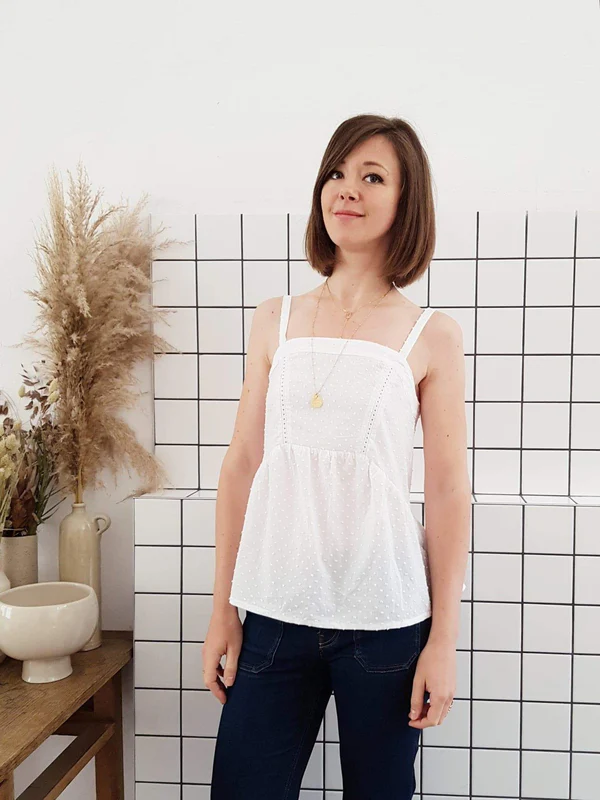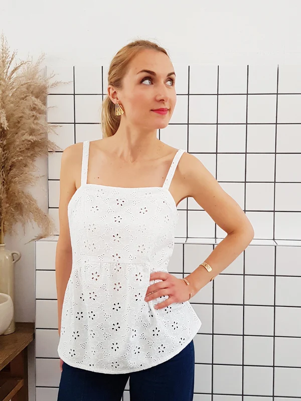 Ses découpes délicates et son empiècement qui sublime le décolleté en font une robe ou un top romantique ou graphique, selon le tissu choisi.