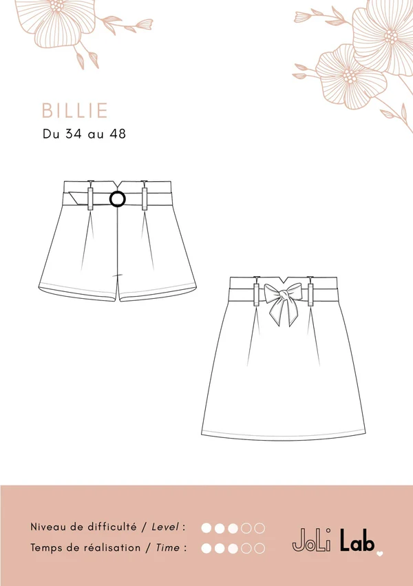 Billie est un patron de short ou jupe taille haute à la silhouette moderne et structurée.